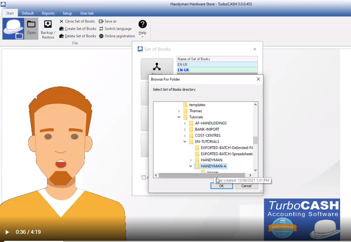 Use the Handyman example data that comes installed in TurboCASH