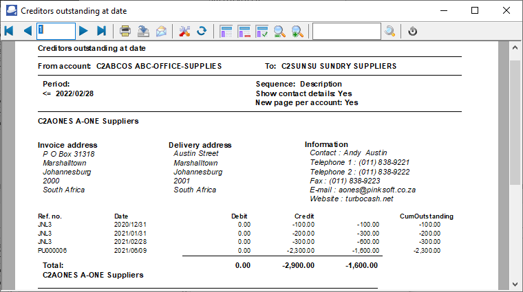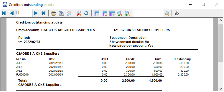 Creditors - Outstanding - Outstanding at date (Reports menu)
