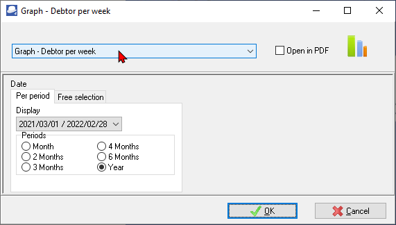 An example of the "Graph - Debtor per week", is as follows: