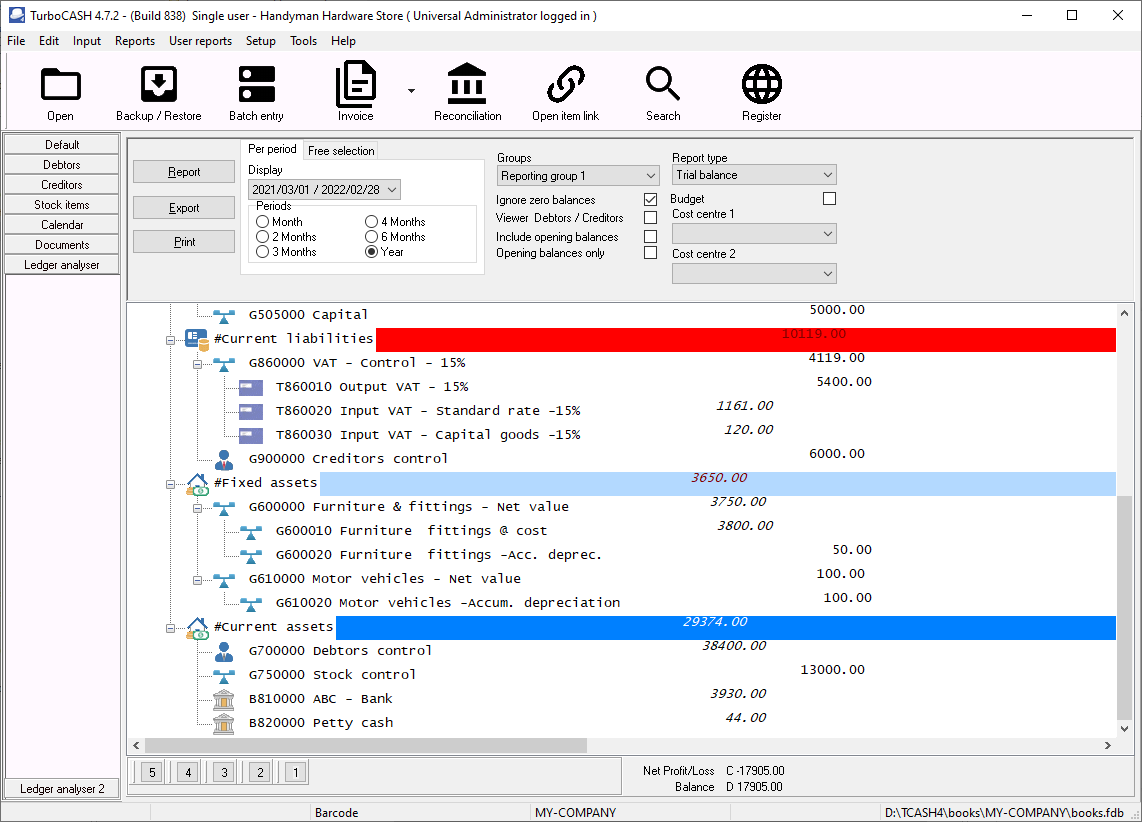 BecauseTurboCASH4 can work in over 20 languages and in over 80 different tax regimes, there are many ways to set it up. The key to the TurboCASH4 program is in the setting up of the parameters. Failure to setup the program correctly will yield incorrect results. Fortunately you do not have to worry about this. If this is the first time that you are using the software then it is best to use the EXAMPLE set of books installed for your country rather than creating your own Set of Books. The fewer changes you make to this the better. |