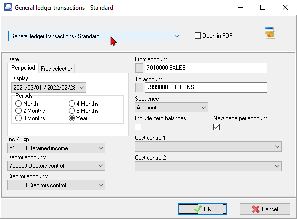 2.Select the "General ledger transactions - Standard" or "General ledger transactions - Extra details".