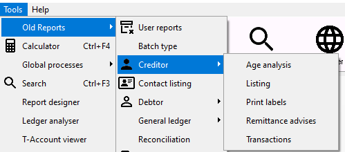 To access the Tools → Old Reports → Creditor menu: