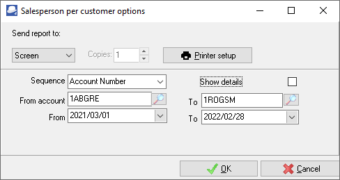 b)Show details - If this field is left blank, you will view the totals of documents (Invoices and Credit notes) issued for each Debtor (customer / client) by your Salespersons.