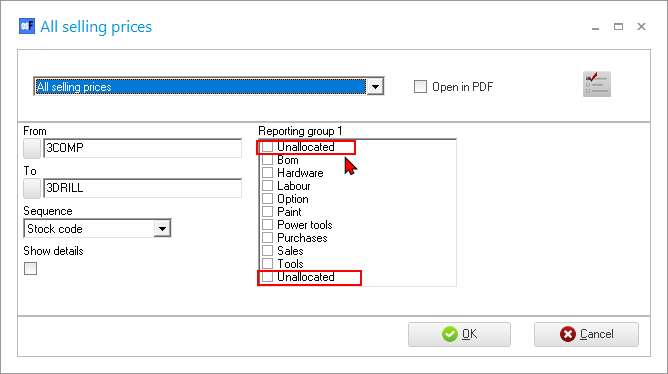 In some databases (Sets of Books), the “Empty” tag for Reporting groups were displayed the same as the “Unallocated” tag.