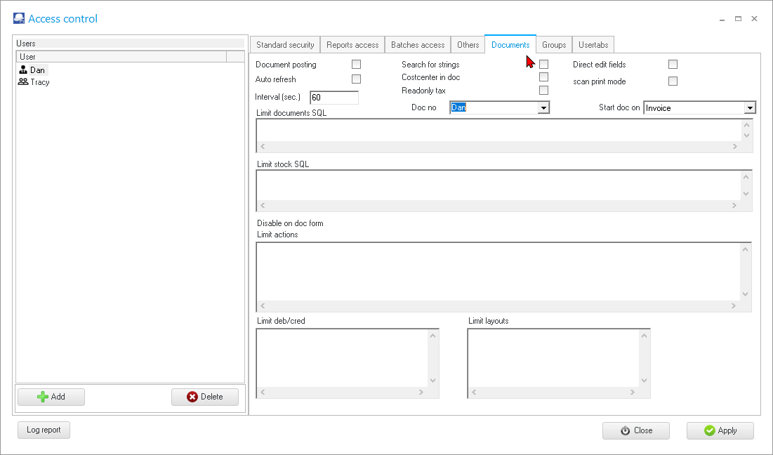 Access control - Documents tab