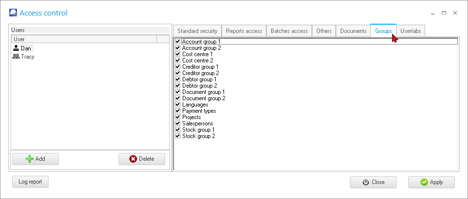 Access control - Groups tab