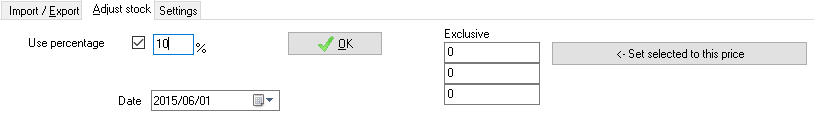 - Click on the OK button. All selling prices will automatically be adjusted by the specified percentage.