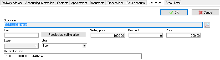 - Stock items (Backorders) tab