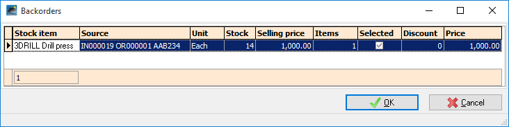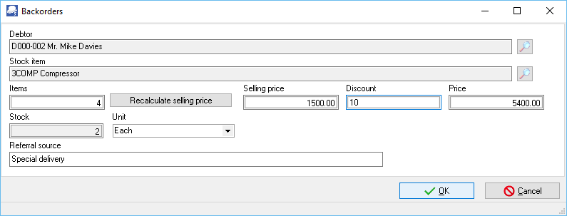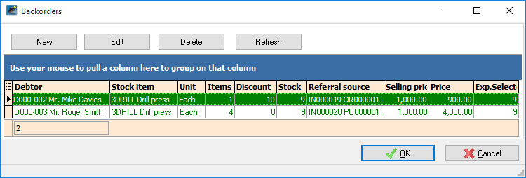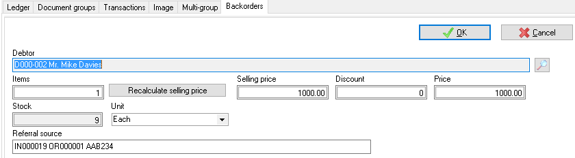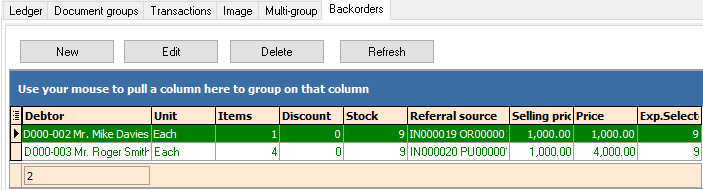 Default → Debtors (Backorders) tab