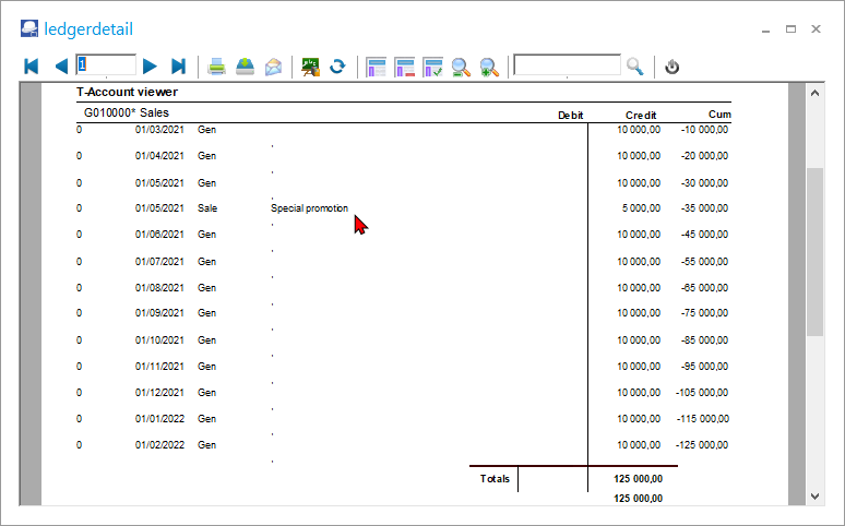 Budget listing - T-Account viewer