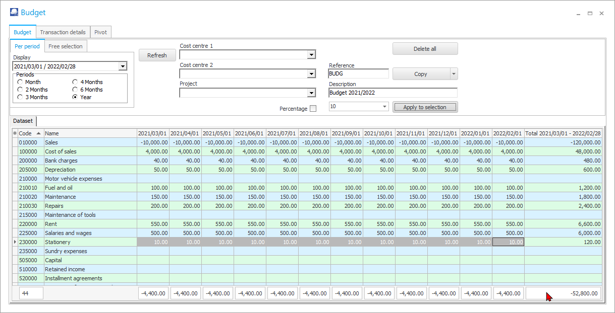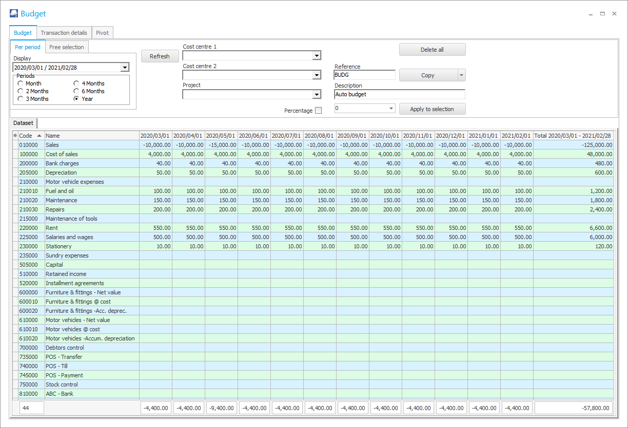 - Cost centre 1 - Budgets may be entered for Cost centres (Cost centre 1), if activated.