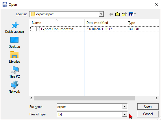 This option allows you to import documents from a valid exported txf file (exported in the Export - Documents option on the Setup ribbon).