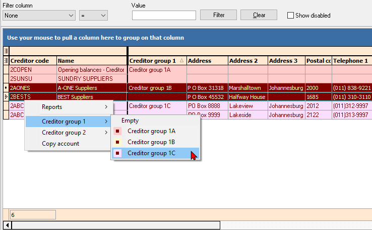 Creditor - Context menu - Set Creditor Group 1/2