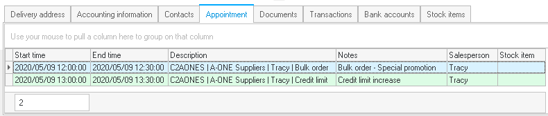 All scheduled Creditor Appointments (events) added in the Calendar (Default ribbon) for the selected creditor (supplier / vendor) account will be listed here.