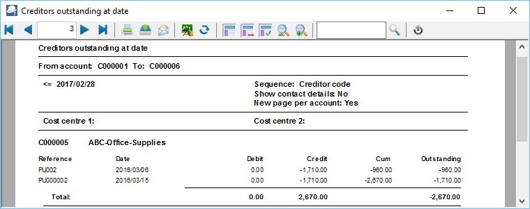 Creditors - Outstanding - Outstanding at date (Reports menu)