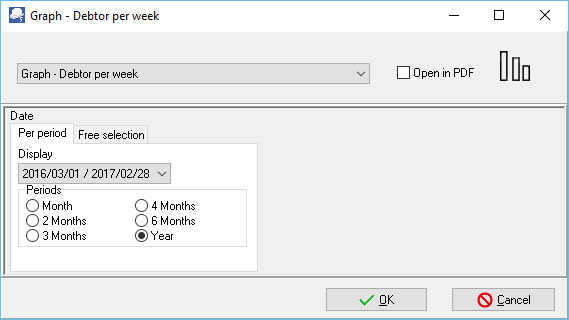 - Select the Period - Select a period on the Per period tab. You may click on the Free selection tab to select a specific date or a range of dates to include in the graph.