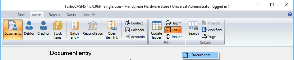 This option is used to delete the selected document types (Invoices, Credit notes or Quotes for your debtors (customers / clients) and Purchases, Supplier returns or Orders for your creditors (suppliers)) which you have created or edited in Documents (Default ribbon).