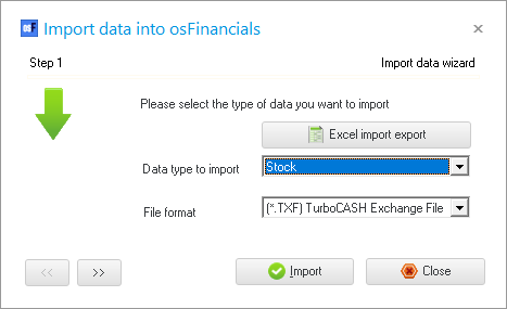 - Select Stock as the Data type to import, if not already displayed.