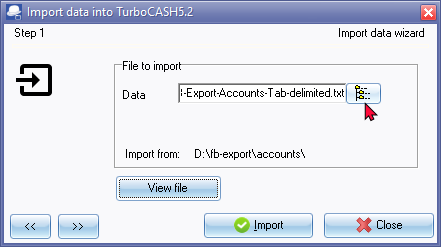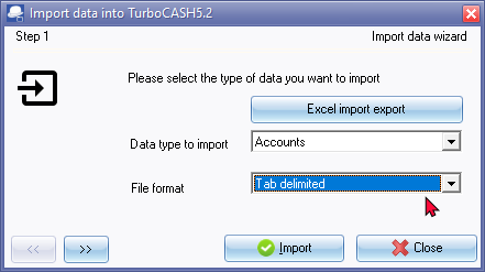 To be able to import the data for Account records, you need to have created a valid XML Database file, TXF TurboCASH Data Exchange file, Lotus Spreadsheet file on your system in the Setup → Export menu.