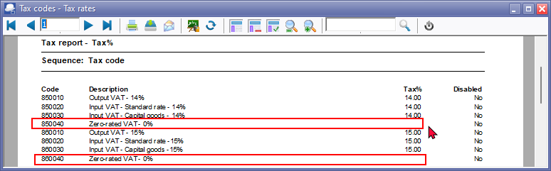 After confirming Zero-rated "0" tax percentages (tax rates) the Tax rates should be correctly listed as "0" percentage.