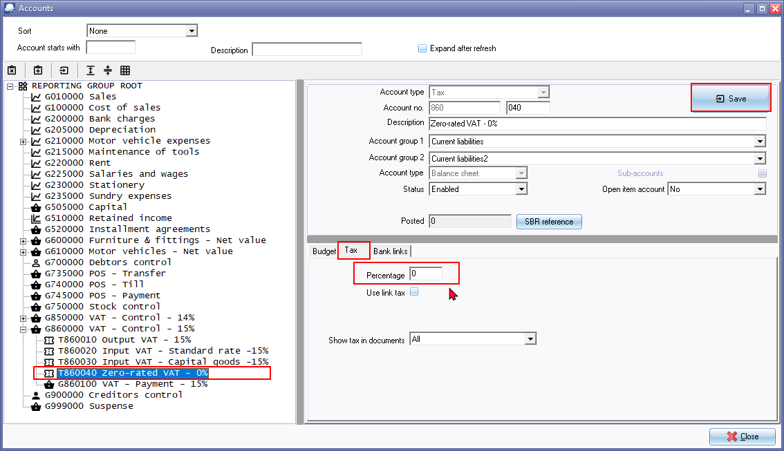 Zero -rated Tax (VAT/GST/Sales tax) accounts - Confirm Zero percentage