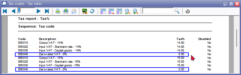 On the Tax codes - Tax rates report (User reports -> Tax on the Reports ribbon), Tax percentages with a zero-rate will be Imported as a blank percentage.
