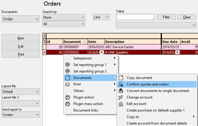 - Copy - "Documents → Copy document" or "Documents → Copy to → Orders" option on context menu (right-click).