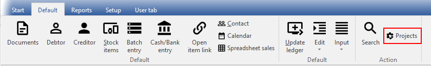 - Close the Set of Books and re-open the Set of Books (Start ribbon) again. Projects (Default ribbon) will be activated.