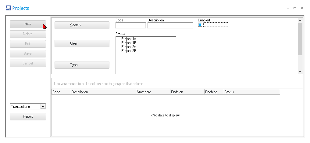 - Code – This Code is automatically generated. When clicking on the New button, it will automatically generate the next Project code.