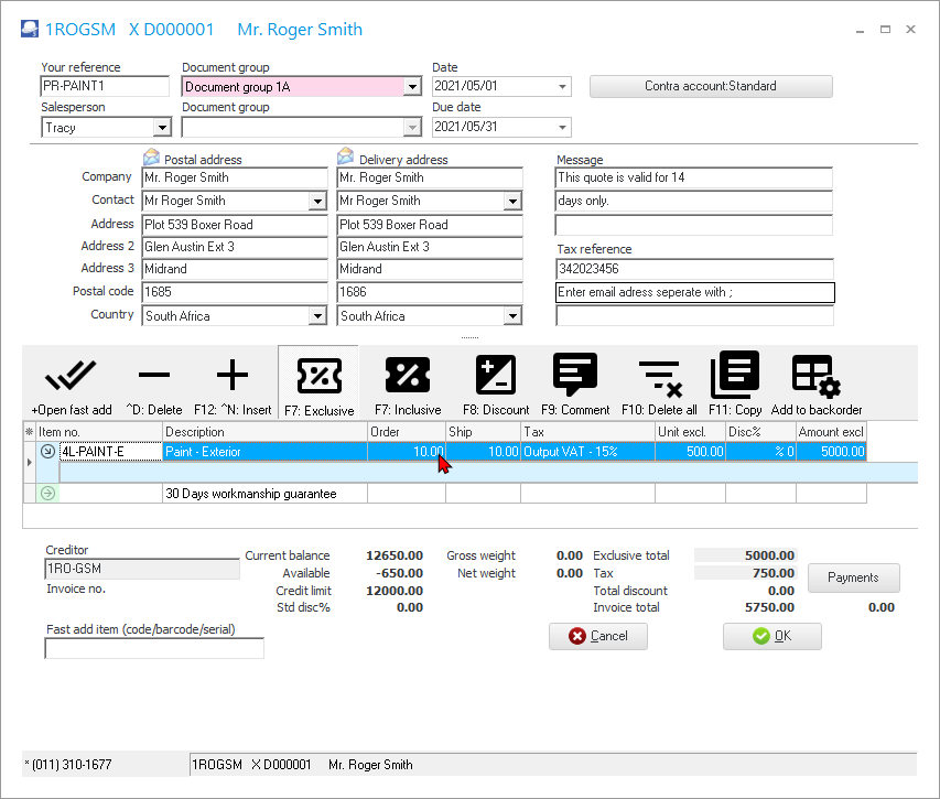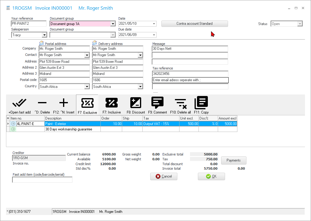 - Debtor / Creditor - Launch the “Debtor” accounts screen to edit or check specific details for the debtor (customer / client). If a “Creditor” is indicated, it will launch the specific creditor (supplier / vendor) account.