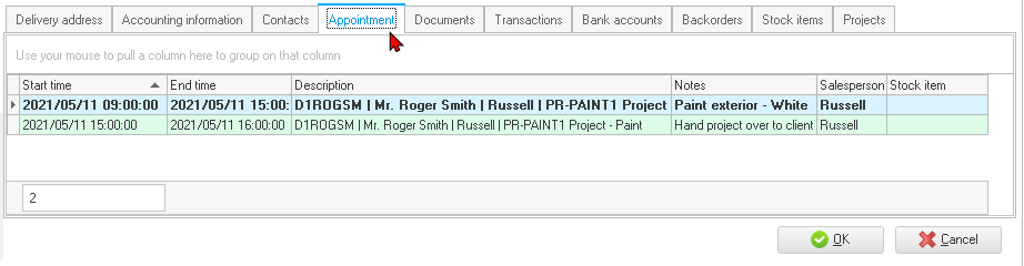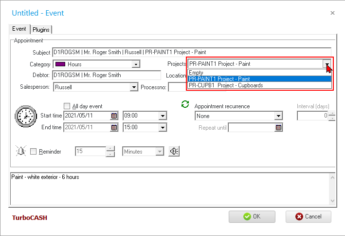 You may use the Calendar / Planner to schedule events (appointments) create quotes for hours and convert them to invoices. You may schedule events (appointments) for creditors (suppliers / vendors) as well as up to six (6) categories of appointments with your debtors (customers / clients).