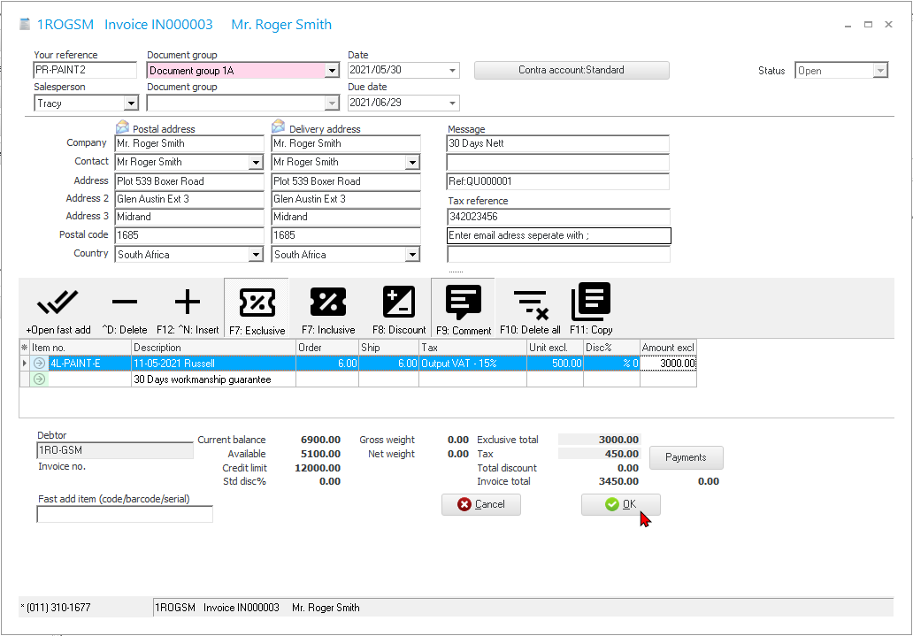 - Debtor – Select a default debtor (customer / client) account.