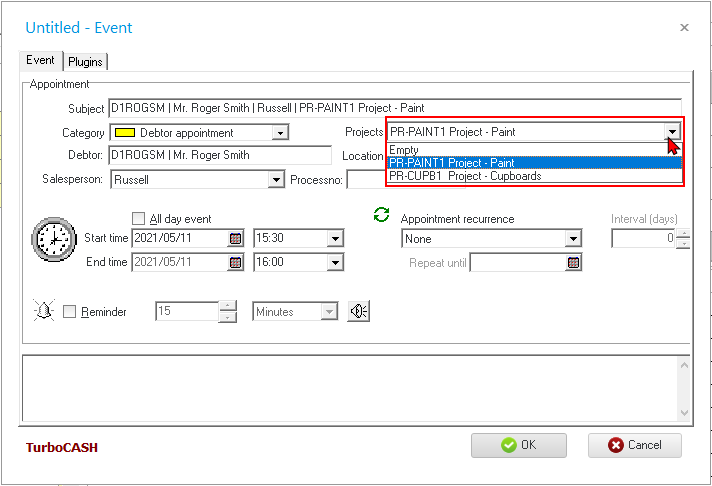 - Status – Select a Project from the list (added / created in Projects (Groups on the Setup ribbon).