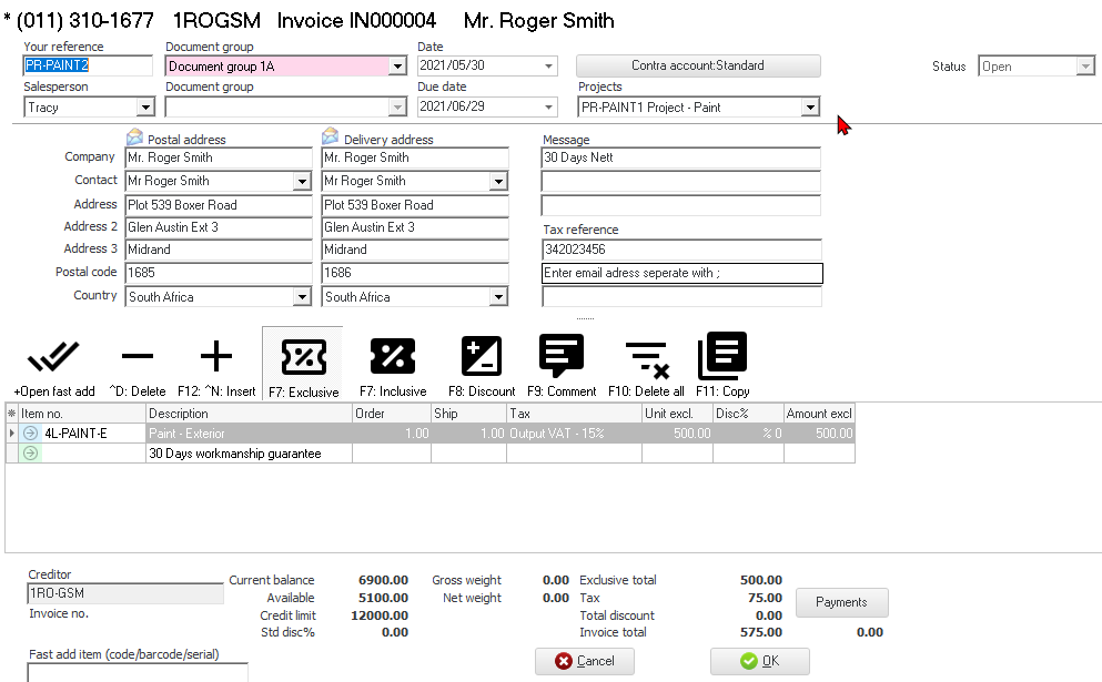 In this example,Invoice IN000004, needs to be deleted from the project.
