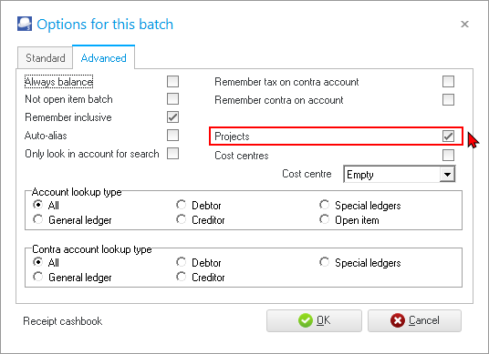You may select to process batch transactions and generate sales documents (i.e. Quotes, Invoices and Credit notes) as well as purchase documents (i.e. Orders, Purchases and Supplier returns) for projects.