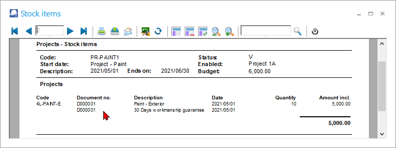 - Select the incorrect transaction, i.e. “Project Quote – D000001”; and double-click on the selected document. The “Details” tab will list all the posted transactions.