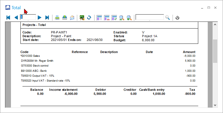 - Totals – Prints the summary of the project totals