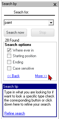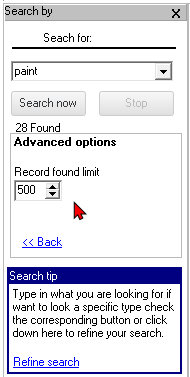 Further “Search” options are available to select from. If you click on the More >> link, the “Advanced” options will be available in which the limit for the number of records found may be set.