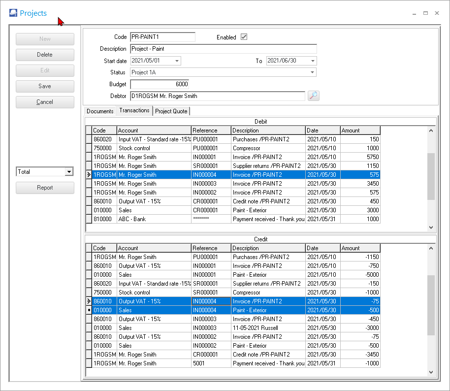 - Delete selected transaction(s) from a project.