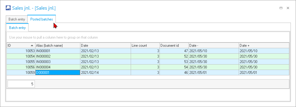 - Click on the Posted batches tab. All the posted batches will be listed.