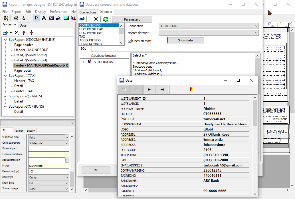 First record buttons to view the transactions / and or comments. - Click on the OK button of the "Database connections and datasets" screen.