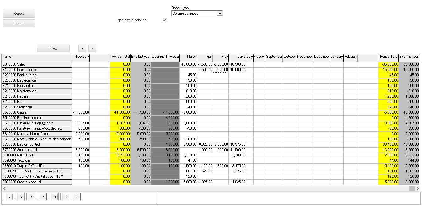 Ledger analyser - Column balances