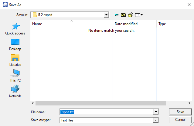 - The default file name will be "Export.txt". Overtype this with your own name.