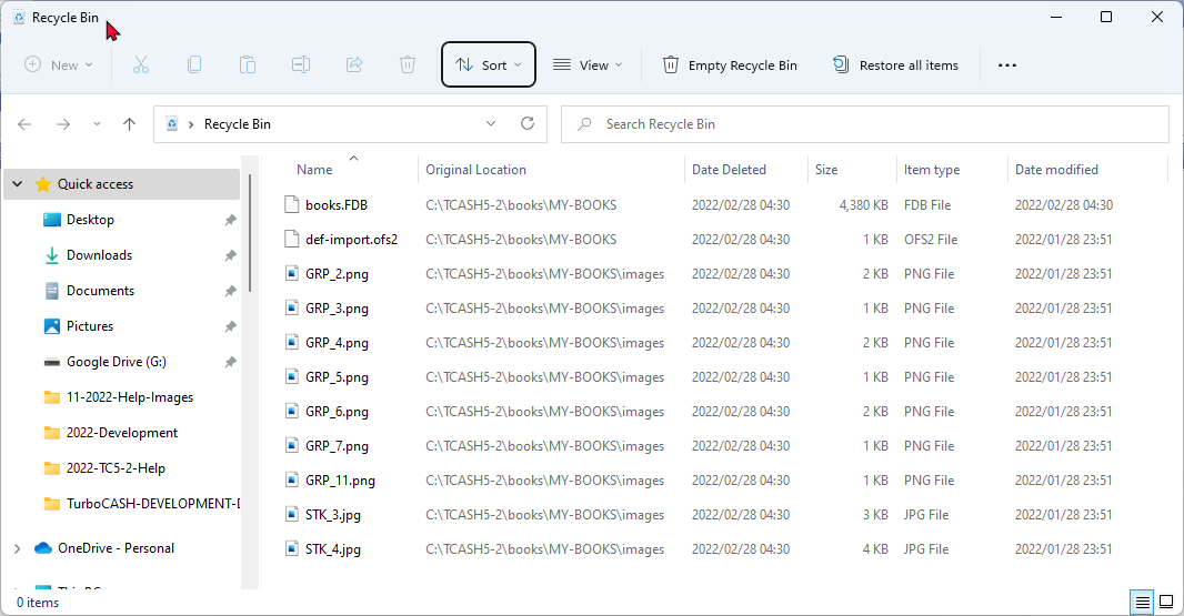 Once the Set of Books is deleted, the contents of the folder with the name of the Set of Books maybe emptied and the files for the Set of Books will be transferred to the Recycle Bin of your Operating System.