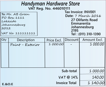 Should you, for example, make one payment or issue a check for petrol and repairs and wish to allocate the petrol to one account and the repairs to another account, you need to enter each of these items (parts of a transaction) in 2 separate rows. You will still need to use one reference number (same check number) for both transactions. You will then have one source document (check) with 2 entries representing 2 transactions with the same party. |