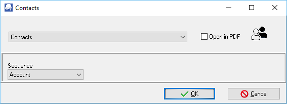 To list only the contacts for customer accounts, you need to print it in Reports → Customers → Listing - Contacts. To list only the contacts for vendor accounts, you need to print it in Reports → Vendors → Listing - Contacts. |
