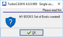 This new Set of Books can be accessed within the TurboCASH program, even if it is not created in the TurboCASH directory. TurboCASH allows you to keep your Set of Books in any mapped directory, i.e. on a local or network drive.