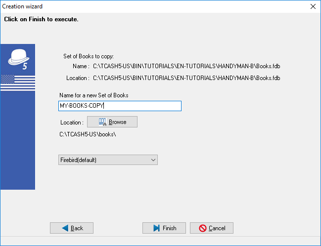 This is similar to Start → Save as, where you may save an exact copy of an existing Set of Books with a new name. |