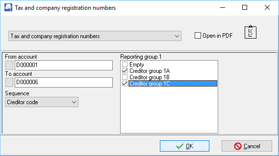 c)Reporting group 1 - Select a reporting group or more reporting groups. The report will only be printed for those vendor accounts linked to the selected Vendor reporting group 1.