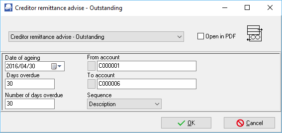 An example of the "Vendor remittance advice - Outstanding", is as follows: